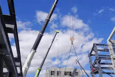 乐天堂·fun88钢构合作吊装40吨工程现场